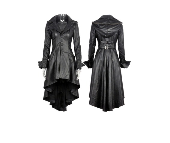 Jw096 Gothic Leather Dovetail Robe Jacket With Eyelets Cap