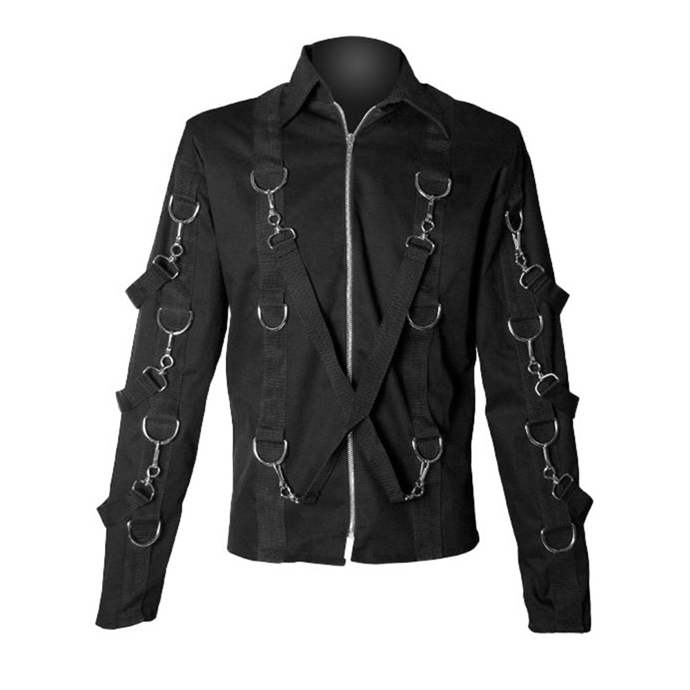Men Gothic belt denim black jacket