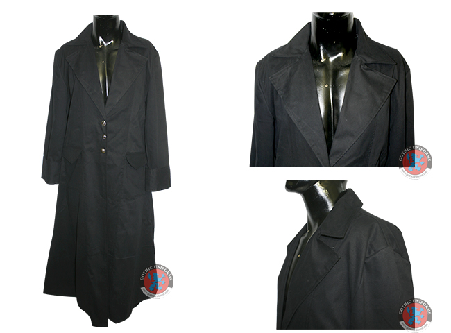 Black Color 100% Cotton Mens Long Coat Folded Cuf 3 Botton and 2 Pockets on Front with Coat Colar Style