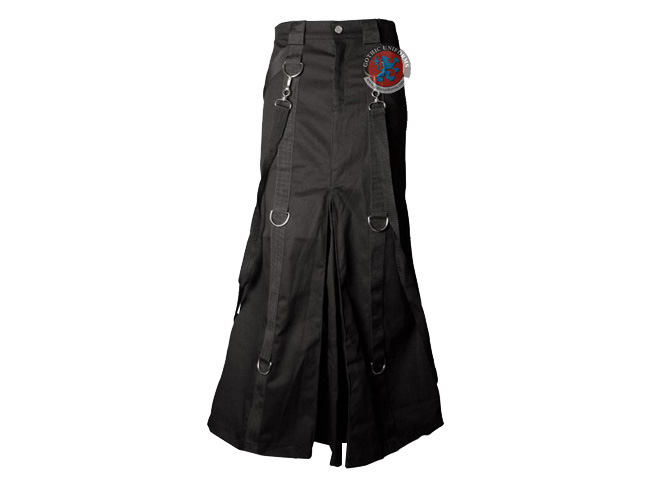 Dr. Abominable Long black mens skirt, gothic bondage style with d-ring and straps