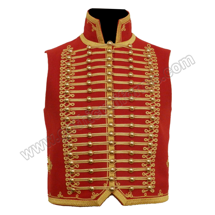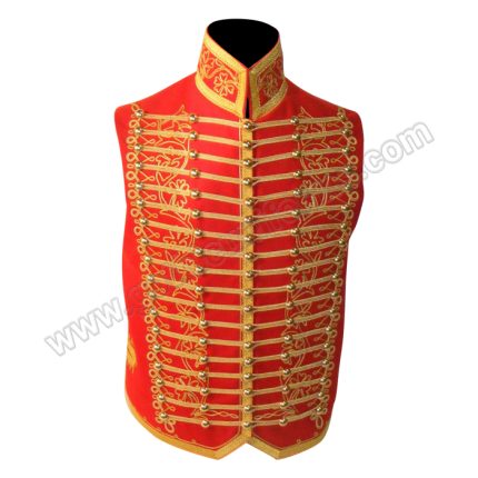 Gothic Men Red and light cavalry officer Waistcoat With Golden Braid and Brass Doom Buttons