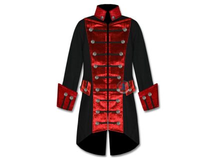 Gothic Punk Mens Black With Red Velvet Trim Coat