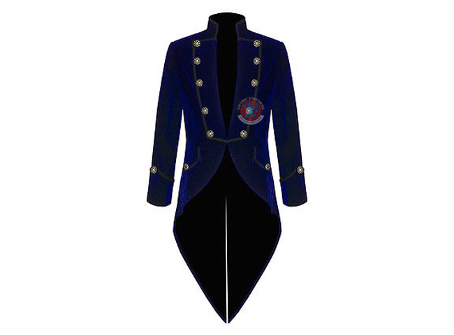 Gothic Punk Mens Handmade Tail coat Jacket Blue Velvet Steampunk Victorian
