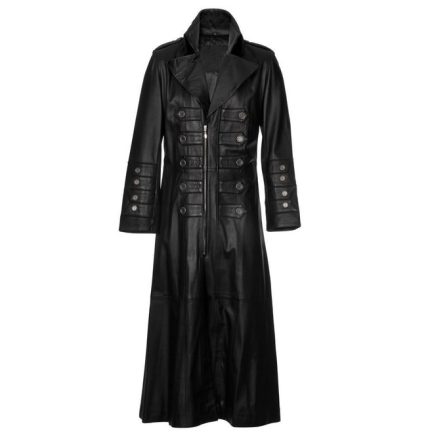 Mens Gothic Full Length Black Leather Military Steampunk