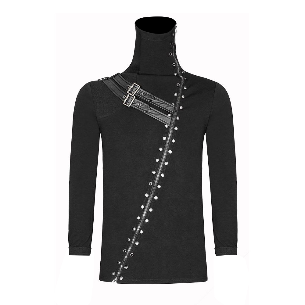 Men Dieselpunk Shirt Steam Punk Black Top Shirt Gothic Military Faux Leather