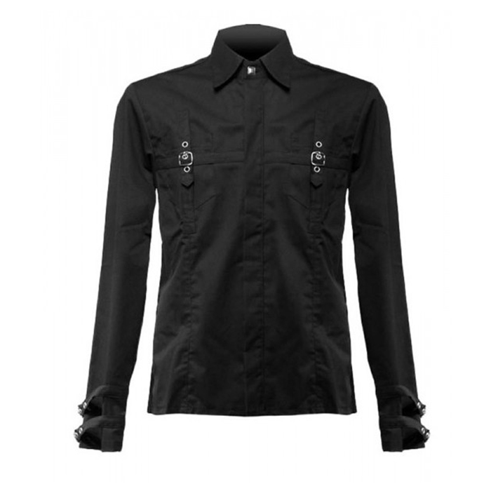 Men Gothic Black Lock cardy fine black denim shirt cotton material