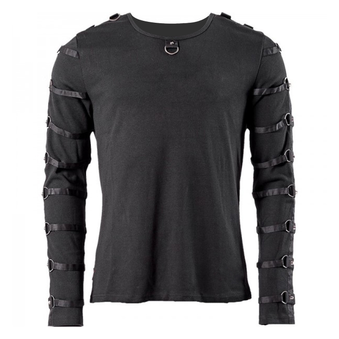 Home Gents Shirts Men Gothic black shirt with rings and studs on sleeves
