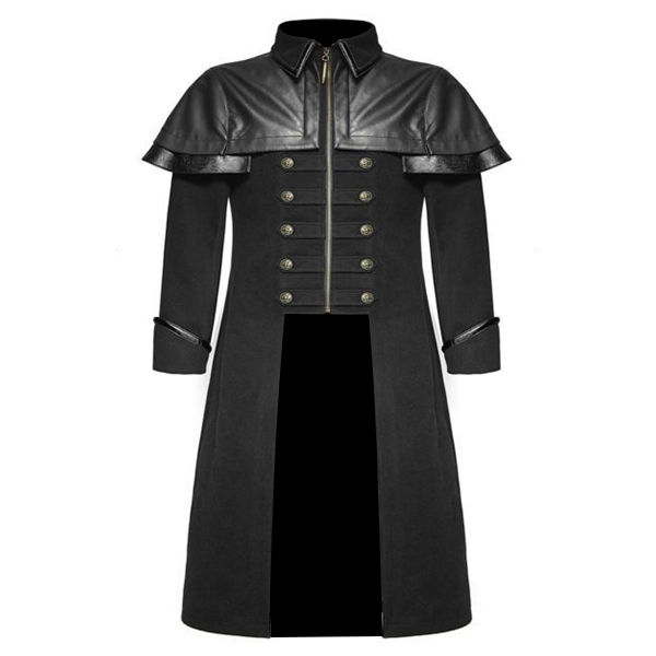 Mens Long Coat Jacket Black Gothic Military