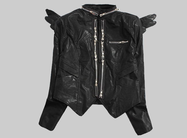 PU Fireboats punk hippie PU patchwork rivet denim coat short jacket Gothic shoulder fly style