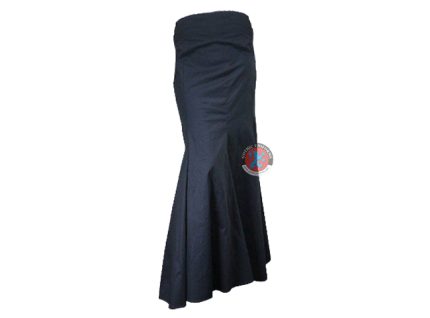 The long skirt hugs the hip at the thighs