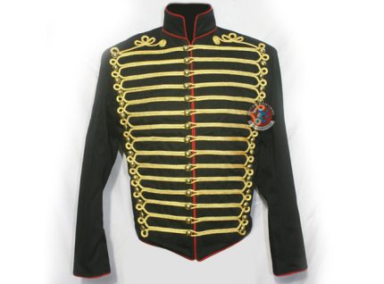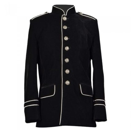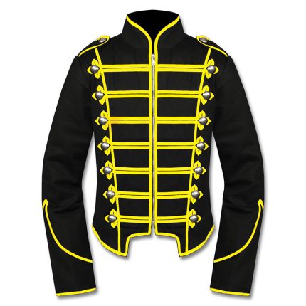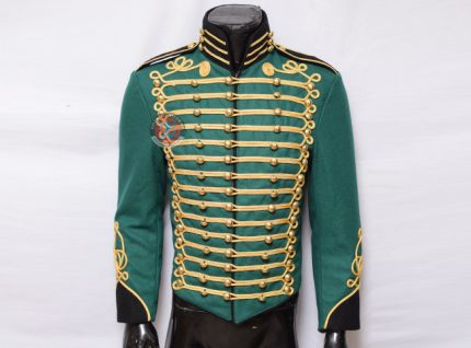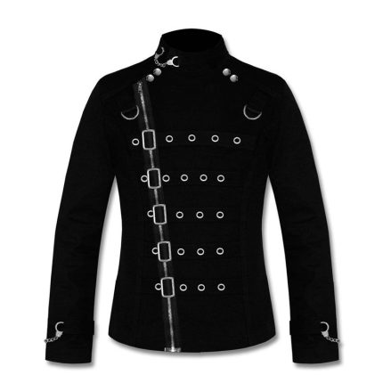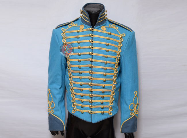 Steampunk Military Jacket in Blue Color With gold braid decoration to front Brass dome buttons