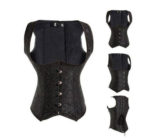Home Ladies Satun Corsets Women Gothic Jacquard Straps Overbust Corset